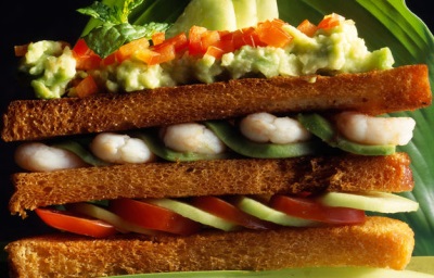 Reteta de sandwich club cu avocado si creveti