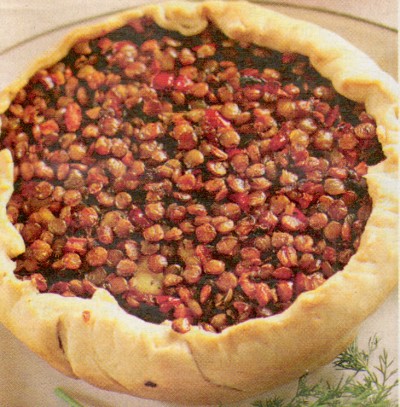 Tapetezi forma rotundă cu foaia subţire, adaugi umplutura de linte şi dai la cuptorul bine încins timp de 20 de minute.
