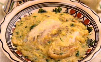 Toată pieliţa, împreună cu grăsimea de pe găină le topeşti bine. în grăsimea rămasă adaugi 200 g mălai. Amesteci până se prăjeşte, apoi torni 1 I apă şi laşi să fiarbă. Din găina rămasă, de exemplu pieptul şi pulpele, tai cuburi mai mari. Pui să fiarbă împreună cu pătrunjelul tăiat mărunt, iar la sfârşit adaugi usturoiul ras şi sare după gust.