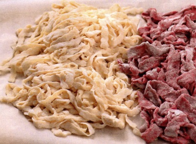 Pregăteşti aluatul pentru paste albe şi roşii aşa:
