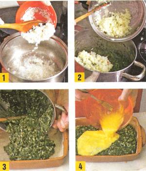 Cureţi urzicile, le speli în mai multe ape şi apoi le adaugi în apă fierbinte şi le laşi să fiarbă circa 15 minute. După fierbere, le scurgi şi le laşi să se răcească, apoi le toci mărunt. Orezul spălat îl fierbi.